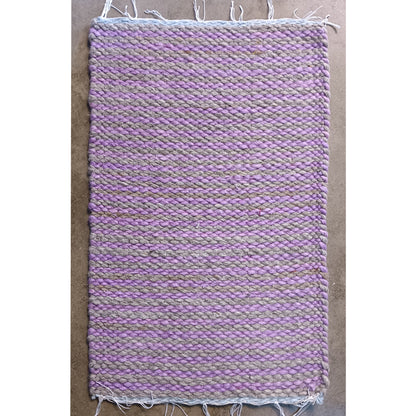Step into luxury with our Hand Woven Wool Doormat, the perfect accent for any entryway or living space. This charming 18x24 inch wool doormat features a beautiful, chunky braided texture with alternating stripes of soft Lilac and neutral Gray. The soothing color palette and dense weave immediately bring a touch of Bohemian elegance and warmth to your home's threshold. Each Natural Doormat is crafted by hand, ensuring your piece is genuinely unique. The distinct, subtle variations in the weave confirm its artisan quality.
