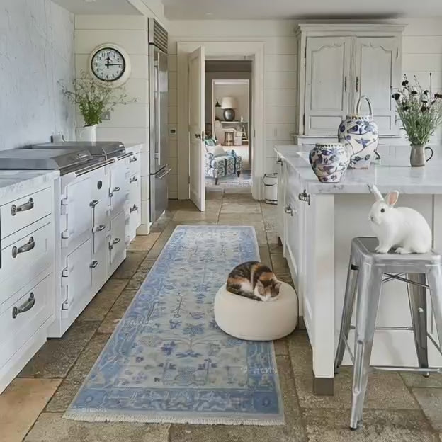 Its low-pile height makes it ideal as a large hallway runner or corridor runner without snagging. The rich blend of blue, soft denim, and ivory enhances any space with softness and harmony.
